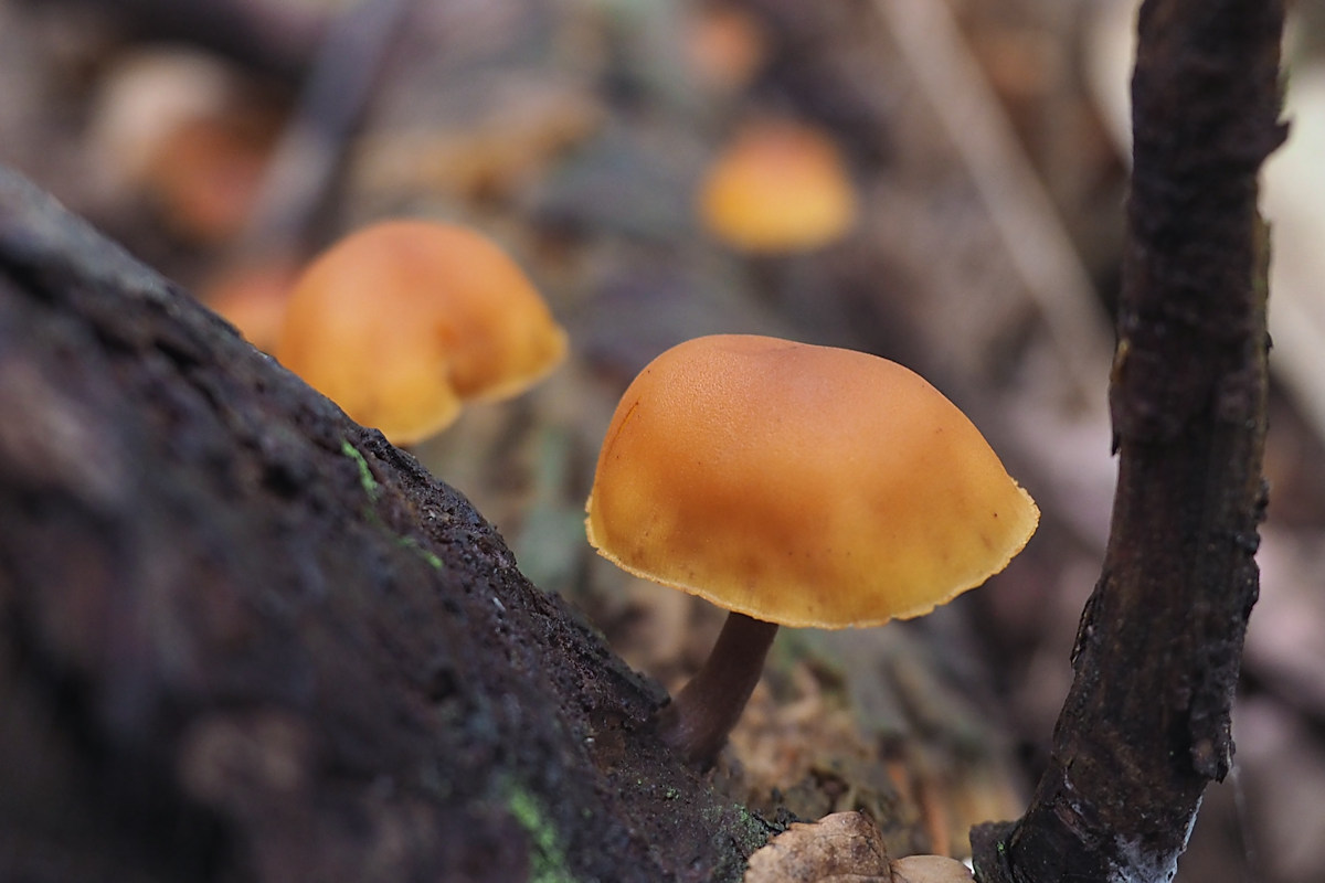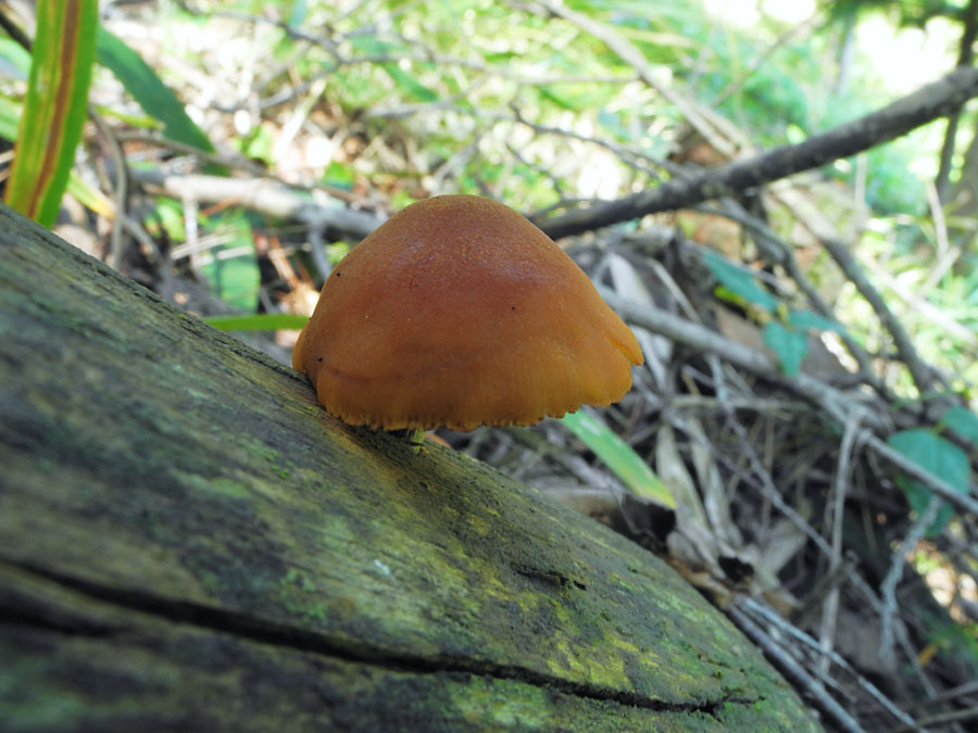 1.5-4.0p以上 円錐状鐘形→饅頭形→平 帯褐橙黄色−橙褐色 表面粘性なし 平滑 成熟につれ縁部に条線あらわす