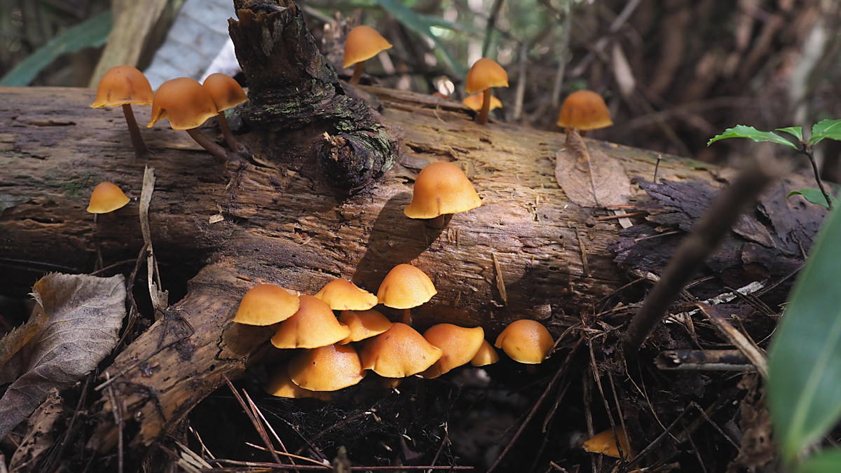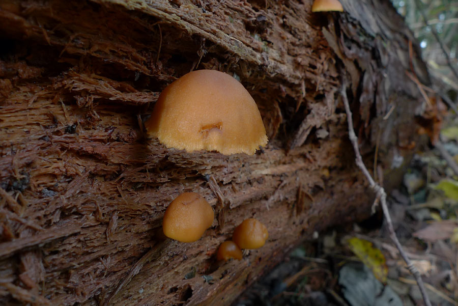 秋に針葉樹腐木上に発生する