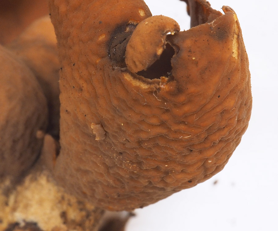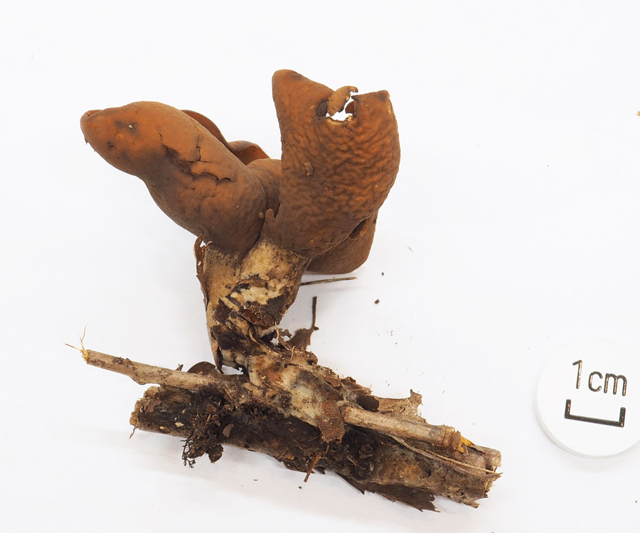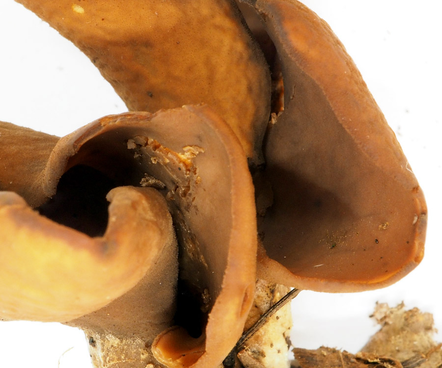 ウスベニミミタケ属の特徴は耳房形かお椀の一部が欠けていることであり、お椀形にはならないようだ。