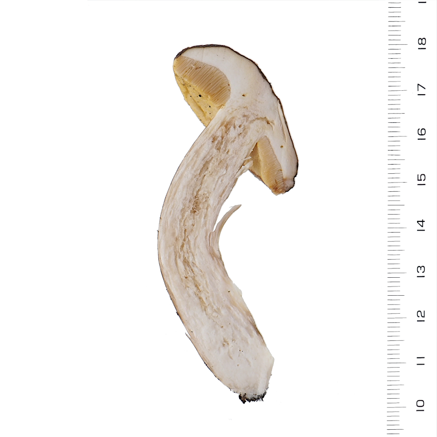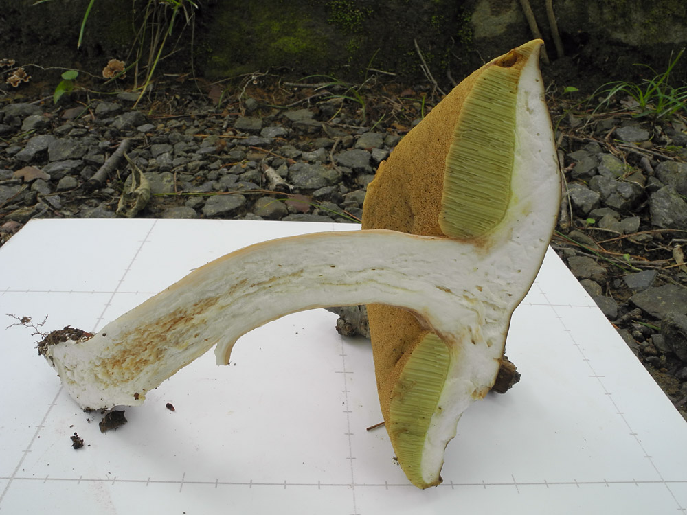 図鑑によるとウツロイイグチ属は常に幅狭い。孔長6-8mmとの記述があり、下記子実体は8oである。この管孔の長さにも多少に疑問を持っている