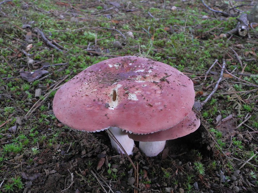 径5.0p-11.0p 饅頭形→中央がややくぼんだ平ら 血赤色−紅赤色 多少粉状 表面粘性なし ときにひび割れて白い肉をあらわす
