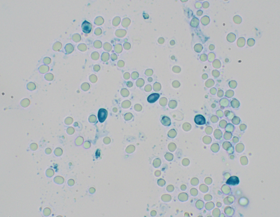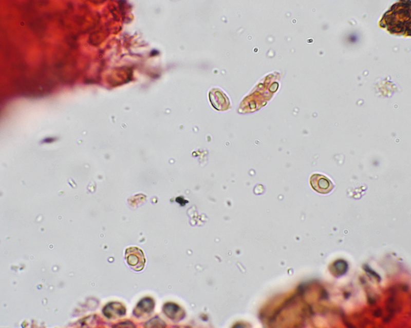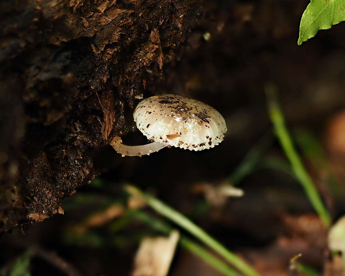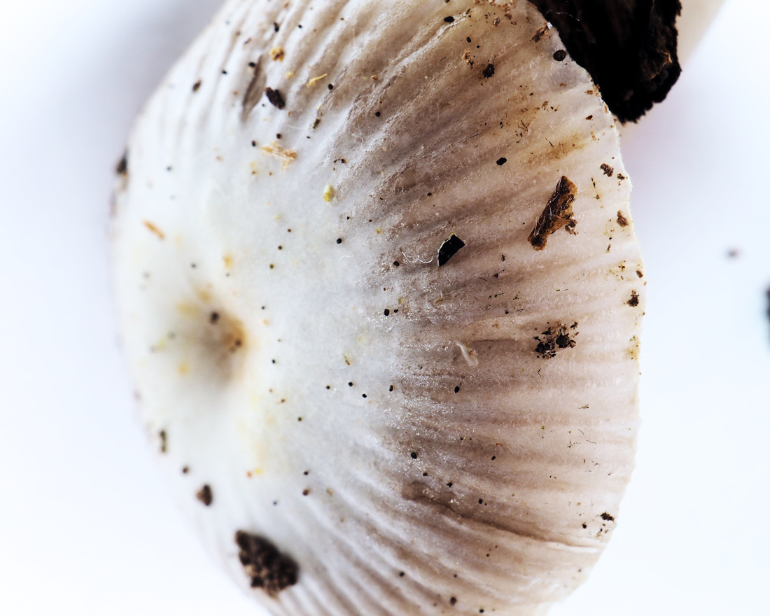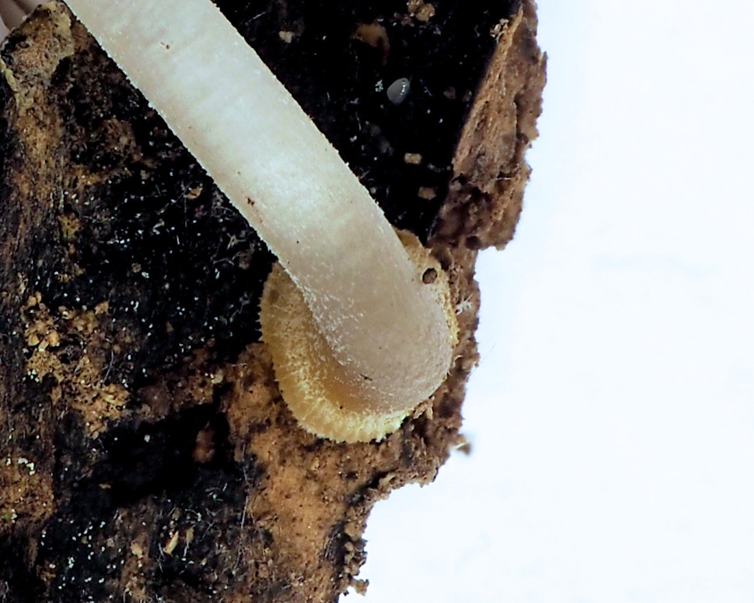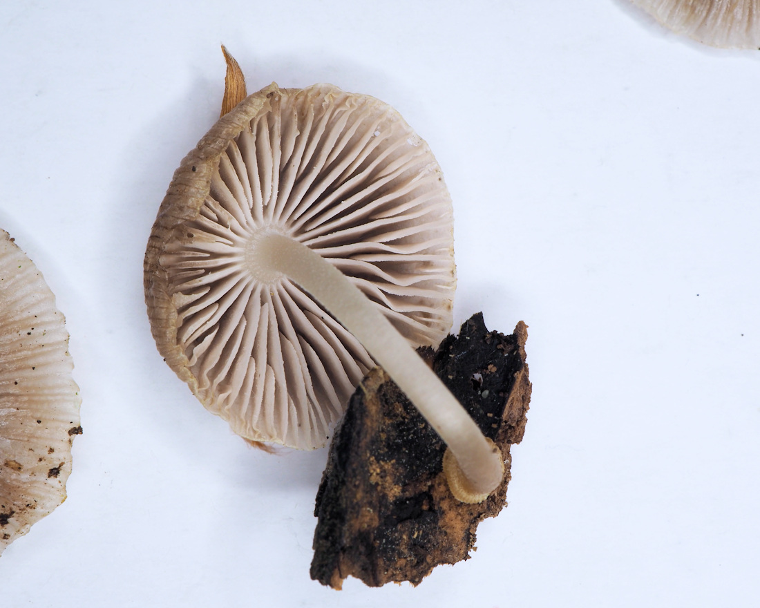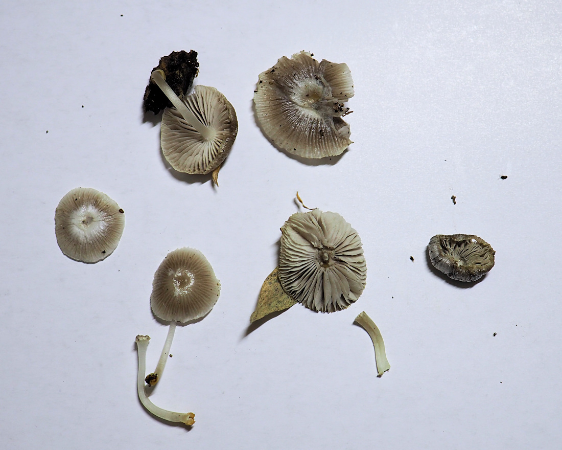 ヤコウタケはDesjardin et al.(2010)はほとんど灰褐色で中央部は黄褐色から濃褐色,池田(2013)は暗灰褐色から淡灰色で中央は暗色と述べていることから、ヤコウタと形態的に類似する菌はかなり白っぽいようである。