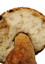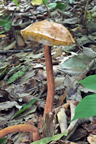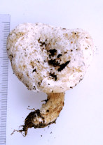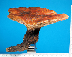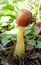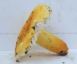 ![]() 柄基部の黄色菌糸が偽アミロイド |