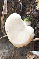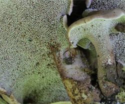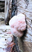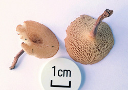![]() 若い菌は薄いピンク色、孔口が特徴 |