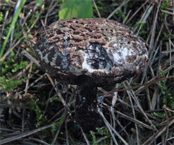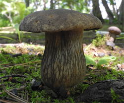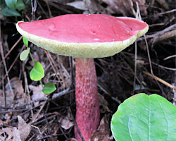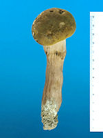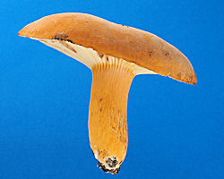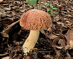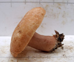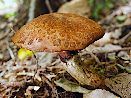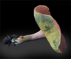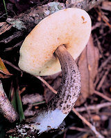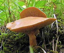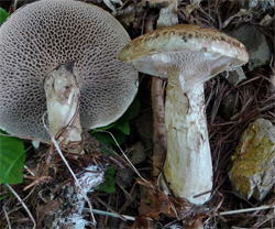 | 不明イグチ(2023年09月22日) ニガイグチ属の一種? (柄部全体に網目あり・傷つくと赤褐色→濃褐色変) |