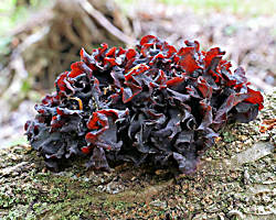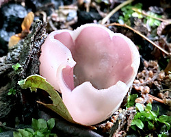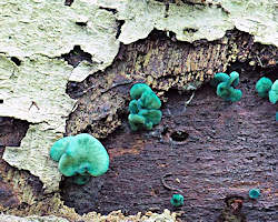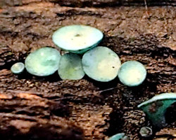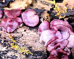 | アオサビシロビョウタケ | ロクショウグサレキン | ムラサキゴムタケ(広義) | アラゲコベニチャワンタケ |
