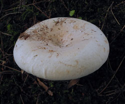 ![]() 赤しみ生じる。傘は成長で赤褐色となる |