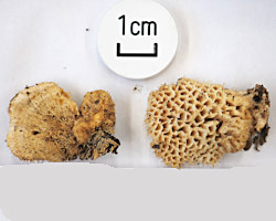 | オオチリメンタケ | ツヤウチワタケあるいは類似種 | ハカワラタケ | |