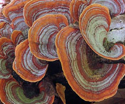 | ホウロクタケ | ホウネンタケ | ミイロアミタケ | カワラタケ |