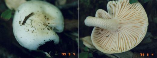 標高915m付近で階段状に整備された登山道は終わるが,その後も良く整備された登山道が続く。周囲はブナ林で林床は笹に覆われている。標高945m付近できのこのオキナクサハツやツエタケ,不明種があった。また,メボソムシクイ(鳥)あるいはコメボソムシクイがチョジョリ,チョジョリと啼いていて「良く来た良く来た」と歓迎しているようだった。でも,今頃さえずるのも変だな。