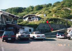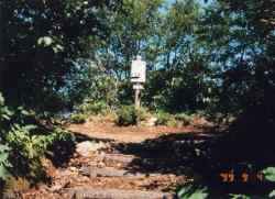 森(もり)山荘手前にある登山口。森山荘の駐車場奥の,よう壁に沿って上がっていく。温泉利用客専用の駐車場なので,ここには絶対駐車しないようにしましよう。