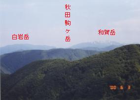 9:10 標高845m ヤセヅル到着 第2回休憩 ここからはまだかなりの雪渓が残っている和賀岳が展望された。(磁北から37度 (北西)方向) その左肩奥には秋田駒ヶ岳がやはり雪に覆われていた。 9:20 ヤセヅル出発 休憩10分