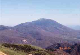 山頂から望む岩手山。 岩手山山頂にもうっすらと雪化粧がされている。 |