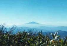 山伏岳山頂から望む鳥海山。雲の海から浮かび上がっているように見える。 |