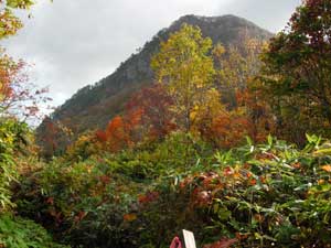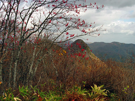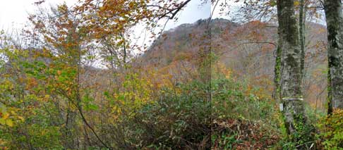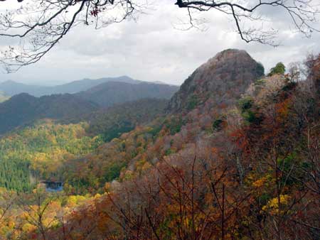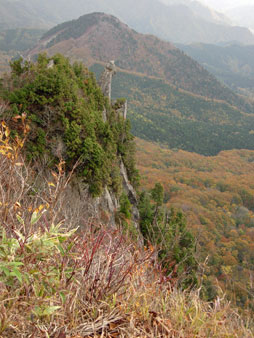 | 10月末の甑山は紅葉と岩峰の取り合わせが,きれいとのことで行ってみることにした。前日に「道の駅」に車中泊し,翌日甑山を秋田側から登ることにした。 事前に調べた道の駅が湯沢インターの近くと思っていたが,いくら探しても分からず,やむなく「雄勝道の駅」で車中泊することにして,湯沢インター付近から引き返した。途中で地図を確認したら,甑山へは「雄勝道の駅」が一番近いようだ。 私が事前に調べた情報を勘違いして覚えていたために,「雄勝道の駅」に到着したのは,予定より1時間も遅れたので,就寝時間が11時30分になってしまった。帰宅後にネットで確認してみたが,何故勘違いしたのかまったく分からない。 翌日は「雄勝道の駅」から出発したが,今度は国道13号線から国道108号線への乗換が分からず,行き過ぎてしまった。「雄勝道の駅」から来た場合には右折するとばかり思っていたが,左折してから大きく迂回し,13号線の上の橋を渡って108号線に乗ることが分かった。 また,その先の皿川集落に入る車道が分からず苦労した。地図上では「松の木トンネル」を抜けてすぐ左折する道があるように記載されているが,そのような道が全くない。トンネルを三つ抜けて少し進むと,「松の木パーク」という駐車場とトイレのある休憩所があり,そこにある大きな案内板に,この先の橋を渡ってから左折するように書いてあった。正直ホッとした。行ってみると「向赤倉橋」と「甑橋」が連続してあり,渡ったらすぐに左折する。ここにも大きな看板があったので,やっと皿川林道に乗ることができた。 甑山へは当初の計画では,コルに登りそこから女甑山,男甑山を登って引き返すつもりでいたが,途中の分岐にあった案内看板に,男甑山から周回できるように書かれていたので,周回することにした。 分岐からは名勝沼経由で,コルに登って男甑山から下るつもりだったが,男甑山の下り分岐の場所が分からないと思い,男甑山側から登り,コルから下りることにした。 男甑山と女甑山の尾根歩きは,大変急登で緊張したが,一番緊張したのは,コルから名勝沼に下りる山腹のトラバースだった。コルからの急登を下りて,やれやれと思ったあとに,左に沢を見ながらのトラバースが始まった。ここはヘツリながら下りるようなルートで,かなりの緊張感を強いられた。 登りならまだ良かったが,岩が滑るので下りながらのヘツリは大変だった。このルートは下りに使うのは危険だとつくづく思った。 下りには男甑山手前ピークから下るのが,下りとしては一番安全だと思う。 |