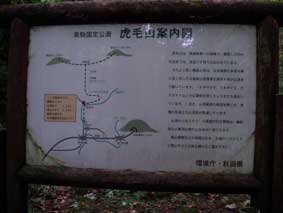 秋田県 虎毛山 登山ルート;林道終点登山口→渡渉点(橋有り)→高松岳分岐→虎毛山山頂(小屋)→湿原→往復 標高1,432.9m |
