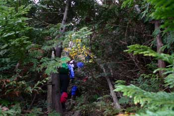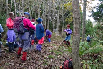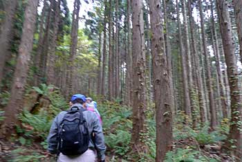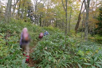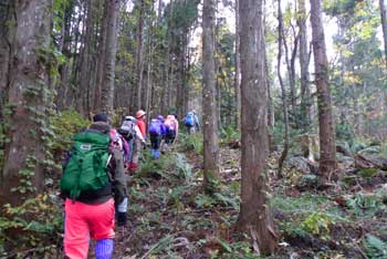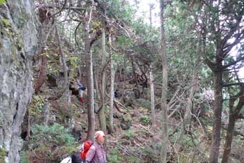 | 4:15 自宅出発 「今回は疲れるかもしれないなぁ。」 郵便局前で会長の車を待ちます。 9:22 青森県横浜町ミチの駅「よこはま」到着。 STさんと合流しました。 10:50 道の駅「川内」到着 11:25 道の駅「川内」出発。 皆さんにいろいろご馳走になりました。 11:29 県道253号線から林道に右折。 小さな道標がありました。 県道253号線から林道に入りました。途中林道工事をしていましたが,通行に支障はありませんでした。 11:39 縫道石山駐車場到着。 12台程度駐車可能です。 11:52 標高330m 登山口駐車場出発 熊除け鈴設置箱の脇から登山道に入ります。 登山口からはいるとすぐに笹が覆い被さる登山道ですが,間もなく笹はなくなります。 ![]() 緩やかに登り切った頂部が広場状に刈り払いされ,これから登る縫道石山が屹立しているのが見えます。こちら側から見ると崖になっていますが,写真の反対側に回り込むように登山道があり,急登ではありますが容易に登れる勾配になっています。とは言っても手足を使って登る勾配です。 ![]() 12:19 標高325m。 野平登山口分岐通過。 この辺は杉林の鞍部になっています。 ![]() 野ビラ分岐を過ぎて間もなくのブナの倒木に,かなりの数のムキタケが出ていました。登山口を出発して間もなくの倒木にもたくさん出ていました。 この山は倒木が多いです。 ![]() 12:31 標高400m ブナとヒバ?の針葉樹切り替わり箇所。休憩 OGさんから5分休憩の声がかかりました。 12:35 出発。 休憩時間4分 出発するとまたも倒木があります。 ![]() 13:00 標高560m 立ち休憩。 この辺りは斜面が少し緩やかになっています。ここには大きな岩があります。写真左手前が大岩です。 ここから先はいよいよ岩塊の急登です。 ![]() 13:02 出発。 休憩時間2分。 写真では分かりづらいですが急登です。五体を使って登ります。 ![]() 13:15 標高625m 縫道石山山頂到着。 休憩。 ![]() 360度の素晴らしいパノラマ展望です。晴れています。北海道も見えています。モヤがかかっていなければ,ハッキリと見えるでしょう。 竜飛岬から北海道の渡島半島まで見えます。 岩峰の頂上で20人も座れば一杯になる狭さです。足元から切れ落ちているので,余り端まで行けません。 13:36 縫道石山山頂出発。 休憩時間21分。 高度計は620mでした。高度計を625mに修正しました。 大岩の足元から切れ落ちている岩に移動します。 13:40 標高625m 大岩に到着。 休憩。 足元から切れ落ちた大岩側から山頂を見ています。 ![]() 13:47 標高625m 崖の先端から出発。 休憩時間7分。 13:56 標高565m 大きな岩あるところ通過。 登りで小休憩したところです。ここか少し緩やかになります。 登山道はかなりの急下降で木の根も出ているので,緊張して下りています。 14:28 標高330m 野平登山口分岐通過。 ここから少し登り返して,緩やかに下っていくと登山口駐車場です。 登り返しの頂部に向かっています。この頂部が広場になっています。 ![]() 14:38 標高390m 縫道石山見えるところで休憩。 ここは広場状の休憩場所になっています。登りにも休憩しました。 ![]() 14:44 出発。 休憩時間6分。 皆さん楽しそうに登っています。熊も逃げ出しそうな大騒ぎです。 広場を過ぎるとあと少しで登山口駐車場に着きます。皆さんリラックスしています。 14:57 標高330m 登山口駐車場到着。 登山靴を履き替え,仏ヶ浦に向かいすぐに出発です。 途中の展望台から仏ヶ浦を展望し,仏ヶ浦駐車場に向かいます。 ![]() 15:32 標高100m 仏ヶ浦駐車場到着。 今から標高差約100mの階段下りです。 仏ヶ浦の海水は透明度が高く澄んでいました。イソギンチャクやウニがいました。 この場所は奇岩が沢山あります。観光船の発着場もあり,観光客を乗せてきているようです。 ![]() ![]() ![]() ![]() |