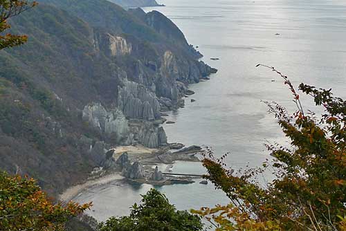 | 仙台峰友会の有志企画山行(企画:OGさん)に参加。 会長とOGさんの車2台に分乗し仙台を出発。 2台の車をそれぞれにメンバーを乗せ,高速道路鶴巣SAで待ち合わせし一路下北半島を目指した。 朝食はコンビニに寄ると聞いていたが,全く寄らず鶴巣SAに着いてしまった。しかし,おにぎりが全く売っていないので,困ってしまったが,HRさんがおにぎりを分けてくれたので助かった。 途中,下北半島横浜町の道の駅「よこはま」で,STさんと待ち合わせした。道の駅には11に到着したが,早めの昼食を済ませた。 鶴巣SAでOGさんから,道の駅「よこはま」の食堂は,到着時に開店していないと思うので,ここで食べるものを買うようにとの説明があった。しかし,昼食弁当どころか朝食おにぎりは全く無く,パンが少しだけ合った。私は道の駅の食堂で食べると聞いていたので,おかずなどなにも持って行かなかったが,皆さんはたくさん持ってきていて,いろいろご相伴になりありがたかった。 その後,STさんの車に副会長さんが同乗して,縫道石山登山口に向かった。下北半島の付け根まで来たので,登山口はもうすぐかと思ったが,行けども行けども登山口に着かなかった。下北半島は広いんだなぁとつくづく思った。 縫道石山は標高差が200m余りなので,お散歩気分でいたが,大岩がれきの急登の連続で,侮れない山だと思い知らされた。でも,適度の緊張感があって楽しい山だった。熊さんが出そうなので一人や二人ではとても登れない山だとも思った。 登山後は福浦崎近くの「仏ヶ浦」で奇岩群を楽しみ,大間崎を見て温泉に浸かった後,民宿「松の木」に入った。「仏ヶ浦」は標高差が100m弱有り結構なアルバイトだったが,ここの奇岩群を楽しめたので良かった。 宿では軽く飲みながらの食事で賑やかな時間を過ごし,二次会も9時頃終了解散になったので,酒に弱い私にはありがたかった。女性達は部屋に戻り,私以外の男性は10時過ぎまで酒を飲みながら語り合ったようだ。 |