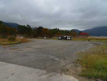 県道4号線に隣接し,100台以上駐車可能な砂利の駐車場がある。 ![]() |
