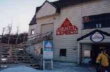 安達良山奥岳スキー場ロープウエイ乗り場 階段を上ったところが乗り場。時間が早いのでシャッターが下りている。