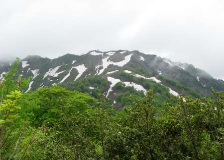 | 8:43 標高1,275m 人見の松到着。休憩。ここまで写真撮影で10分ロス。 登山口まで3.6kmの道標有り。ここでトチの実大福を食べました。美味しい。パートナーが忘れてきたので,私のをあげました。 この休憩場所のそばにオオバスノキ?が可憐な花を咲かせていました。何枚も撮影しました。 8:53 人見の松出発 休憩時間10分。 人見の松を過ぎてからもイワカガミ,コヨウラクツツジなどを撮影し,5分ほどロスしています。他にヒメサユリの蕾が10本位ありました。以前に写真を撮っていたので,今回は撮りませんでした。 9:17 標高1,430m 叶の高手通過。 ここのオオクロベにパートナーが抱きついている写真を撮りました。 ![]() 避難小屋下の雪田手前の鞍部にはイワウチワ,ショウジョウバカマが満開でした。 ![]() 避難小屋下の雪田です。ここは休憩に良い場所です。長居すると足が冷たくなりますが。帰りに50分も休憩を取り,のんびりしました。 9:48 標高1,360m 避難小屋到着 休憩。 周辺にはツバメオモトが咲いています。 パートナーは元気です。休憩もとらないでツバメオモトの写真を撮っています。 私もつられて写真を撮りましたが,ツバメオモトの写真はなかなかきれいに撮れません。 避難小屋に着いたら小雨が降り始めました。下から見た時山頂付近はガスに包まれているようなので,雨が降ると思っていましたが,予定通りと思っていました。 9:53 避難小屋出発。 休憩時間5分。 10:20 標高1,510m 大雪渓下到着。 休憩。 ストック取りだしとパートナーザックカバー取付。 雨が少し強くなってきました。カッパを着込むか迷いましたが,結局着ないで出発することにしました。大雪渓から山頂まではガスで霞んでいます。 ![]() 10:24 出発。 休憩時間4分。 大雪渓は地元の方達がスコップなどで,大雪渓の階段作りをしていてくれました。毎回感謝です。 以前は雪渓を切る前に登っていましたが,切ってもらうと安心です。特に下りは階段になっていないととても下りられません。 10:40 標高1,624.2m 山頂到着。 休憩。 山頂で二人の写真を他の登山者に撮ってもらいました。 山頂で更に雨が強くなったので,カッパの上着を着込みました。下を履くか迷いましたが,結局履かないで下りることにしました。 「この判断は正しかったのだろうか」,今でも迷っています。カッパズボンを履かなかったことで,登山ズボンはビショビショになりました。濡れると分かっていても履かなかったのは,大雪渓の下りはかなり急で,段差もきついのでカッパズボンを履くと,脚が突っ張るのと万が一転ぶと,カッパが滑って,滑落を止められないと判断したからです。 今振り返っても,濡れてしまったけど判断としては正しかったと思っていますが,迷っています。 |