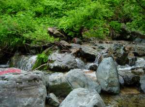 10:50 出発。 休憩時間10分。 11:25 標高1,350m 避難小屋下の雪田到着。 休憩。 ここまで下りてきたら雨が上がり加減です。でも,大雪渓の登りから雨に当たり,登山ズボンがびしょ濡れです。寒くならないようにカッパズボンを履きました。 突然天気が上がってきました。快晴状態です。 カップスープ,パン,漬け物等を食べました。 12:15 出発。 休憩時間50分。 また曇り始めました。休憩時間中だけ青空が出て素晴らしい天気になりました。楽しい休憩ができのんびりしました。 途中で見たいと思っていたタケシマランがありましたので,写真に撮りました。 いつもの雪田があるところでイワウチワをじっくり撮りました。下の写真は同じところに咲いていたイワカガミですが,色が全く違います。個体差が大きいですね。 写真撮影で5分ロス。 叶の高手手前の展望の良いところで,会津朝日岳,毛猛山,浅草岳写真撮影。 会津朝日岳です。 浅草岳です。山頂付近が雲に覆われています。毛猛山,浅草岳は地元の人に同定してもらいました。 写真撮影で10分ロス。 12:55 標高1,430m 叶の高手通過。 オオクロベで写真撮影。すっかり晴れて暑い。後ろに見えているのは会津朝日岳です。 13:15 標高1,275m 人見の松到着。 休憩。 13:20 出発。 休憩時間5分。 ここから三吉ミチギの水場までは,登山道が滑って歩きにくく疲れました。 14:02 標高865m 三吉ミチギ到着。 休憩。 休憩していたら登山者が大勢到着しました。 14:15 出発 休憩時間13分。 また小雨が降り出しました。全く不安定な天気です。 ここからストックを使って下りることにしました。カッパの上着をまた着込みました。しばらく霧雨状の雨が止まないので,結局イワナの里まで着たまま下りました。 2度の沢渡渉を済ませ,平坦歩きになってから,膝が痛くなってペースが上がりません。 15:07 標高540m 登山口通過。 後から来た人達にどんどん追い抜かれました。膝が痛くてスピードが出せません。悔しいです。 15:13 標高540m イワナの里到着。 やれやれです。 何とか着きました。天気は不安定でしたが,当初の天気予報では雷雨の可能性があったので,それを思うとまずまず楽しむことができました。 登り途中の人見の松で休憩中に,ICレコーダーのスイッチオンオフを切り間違えて,その先全て記録されていなかった。また失敗をしてしまいました。よほど気を付けなきゃいけないなぁ。 帰りは只見町のムラ湯に使ってゆっくり帰ってきました。家に着いてからは疲れました。 途中咲いていた植物(気が向いたら高山植物のページものぞいてみてください。) イワウチワ,イワカガミ,ウスノキ,ウラジロヨウラク,エンレイソウ,オオカメノキ,ガクウラジロヨウラク,カタクリ(花と実),コチャルメルソウ,コミヤマカタバミ,コヨウラクツツジ,サワハコベ,サンカヨウ,ショウジョバカマ,タニウツギ,タムシバ,チゴユリ, ツクバネソウ, ツバメオモト,ニリンソウ,ヒメサユリ(蕾),ヒロハユキザサ,ホウチャクソウ,ムラサキヤシオツツジ,ヤマブキソウ,ユキザサ,ラショウモンカズラ 合計27種 ずいぶんいろいろな花を見ることができました。ここ3年で知識が増えたので,見られた種数が増えたのでしょう。ちょっと嬉しいな。 |