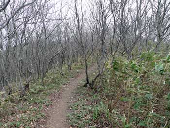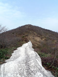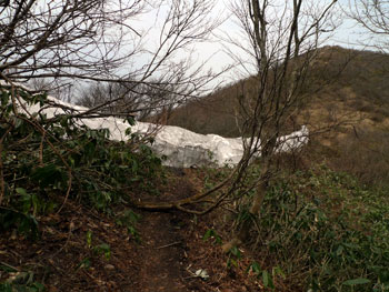 | 10:08 標高1009m ケルン出発。 休憩時間10分。 ケルンからの下りはザレ場で,結構な急下降です。慎重におりました。 この急下降ガレ場にキクザキイチゲ2輪咲いていました。 登山道は所々残雪に埋まっています。登山道を横に見ながら残雪を渡っていきます。 ![]() 10:32 標高1006mコブ通過。 10:48 標高995m峰通過。 三角点有り。 三角点から下ってきたら,エゾエンゴサクやオウレンがありました。撮影で5分ロス。 ![]() 11:23 標高1056.3m。 大将旗山到着。 休憩。 風がチョッとあって気持ちいい。「はぁ,山並みがすっごくいいなぁ」 ![]() パートナーがカップ味噌汁の具をこぼした様で,場所が狭いと言って,かなりイラついています。触らぬ神にたたり無しです。パートナーが場所を移動しました。 12:00 標高1056.3m 大将旗山出発。 休憩時間37分。 下山途中の登山道から額取山を展望しています。 ![]() 12:25 標高992m峰通過。 992m峰から少し下ったところで,キクザキイチゲ撮影。5分ロス。 このキクザキイチゲは葉の付き方が花のすぐ下にまとまって付いています。 ![]() 大雪渓です。 ![]() 額取山に戻ってきました。あと20m位です。 ![]() 12:59 標高1008.9m 額取山到着。 休憩。 ここで私はコーヒーを飲みました。 山頂に蝶がいました。 13:12 額取山出発。 休憩時間13分。 13:40 標高755m 花撮影。 パートナーが花撮影で5分ロス。 振り返って額取山を木の間から撮影した。 この辺りで鳥の羽を拾いました。何の羽根でしょう。 ![]() 13:58 標高680m 熱海登山口と滝登山口分岐通過。 ここを右に曲がって下りていきます。 ![]() 14:10 私の左膝痛くて小休止。 水を飲むからと言って,パートナーに先に行ってもらいました。 2分程休憩したら回復しました。やれやれです。 14:20 標高490m 滝登山口到着。 到着です。膝が痛くなったのが心配です。 ![]() 上の駐車場です。登山口から200m位です。 ![]() ニッコウネコノメがありました。ヨゴレネコネメソウの可能性もありそうです。 ![]() |