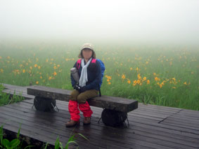 | 雄国沼経由で猫魔岳に登ろうと思ったが,雄国沼からはガスがひどくて,猫魔岳に登るのはあきらめた。以前にも猫魔岳まで行こうと訪れたことがあったが,やはり断念した。 雄国沼湿原ではニッコウキスゲ,サワラン,モウセンゴケ,ワタスゲ等があった。 |