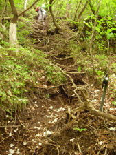 | 私は夏シーズン前のトレーニングの一環で,宮城県の大東岳を考えていた。 パートナーが風邪で体調を崩し,体力が落ちているので,低山で足馴らしをしたいとの希望だったので,取りあえずパートナーの希望で大滝根山に行くことにした。獲得標高は400m程なので,私は物足りないのと,パートナーももう一山行けたら,高柴山に登ることにして自宅を出発した。 大滝根山に間もなく着く頃に,矢大臣山の姿や看板が見えたので,急遽変更してもう一山は矢大臣山に変更した。 大滝根山の大越コースは,沢渡渉など非常に変化に富んでいて,大変楽しかった。体力が残っていたので,矢大臣山にも行ってみた。パートナーは以前の記憶が無くて新鮮だったと言っていた。私は林道歩きがこんなにも長かったかと,改めて実感した。 |