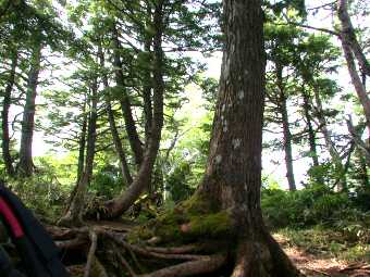 尾根分岐の風景。一休みするのに雰囲気がいいです。 |