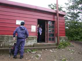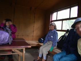 熊の穴避難小屋到着。休憩。 ここでは20人位の人が休憩しています。この辺から西黒尾根が見えます。今度は西黒尾根から登りたい。 8:34 出発 休憩時間10分。