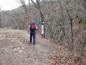 三つ目のピーク手前から登山道が凍っていた。 やっとの思いで第4ピークに到達し,山頂を目指し進んでみたが,凍っている上に雪がうっすらと積もっているので,危険を感じて敗退してきた。無念。 信州から来た中年の女性2名がいたが,雪は慣れていると言って山頂目指して進んでいった。ウ〜ン,複雑。 |