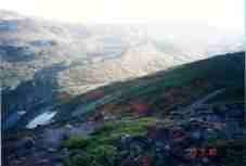 黒岳から石室を望む。右後方は桂月岳(けいげつだけ)