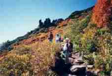 黒岳リフト終点から頂上の間。まねき岩手前の紅葉。