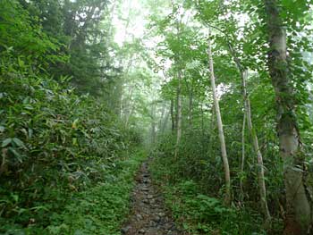 北海道 夕張岳山行記録(2010年7月17日(土)登山ルート;左股沢橋手前駐車場→冷水コース→望岳台→吹き通し→夕張岳山頂→往復 |