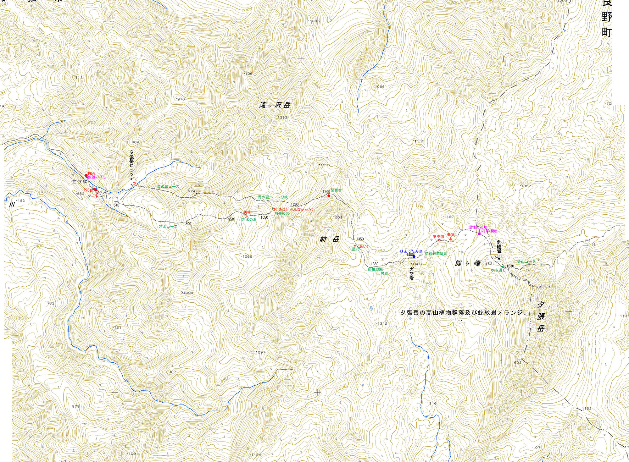 夕張岳の登山道と水場などの情報を記載しました。