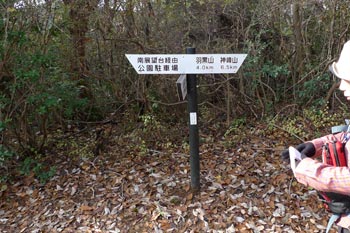 駐車場には羽黒山5.5km,神峰山8.0kmの道標あり。