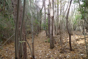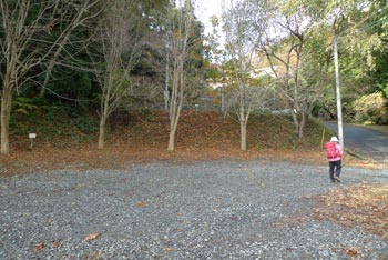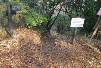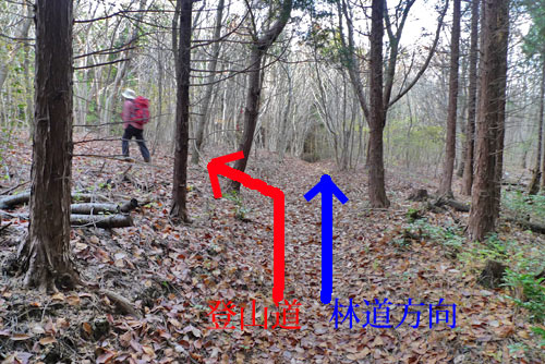 林道から先に踏み跡はついていますが,かなり狭い踏み跡です。踏み跡の落ち葉を踏みしめながら慎重に進んでいます。帰りのことを考えて所々に,落ち葉をかき集めた目印を付けながら進んでいます。