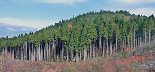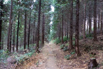 この分岐から沢平方向を見ると檜か杉の林が見事です。