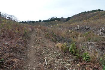 ここは檜の伐採地のようで,荒涼とした風景になっています。進行方向の写真撮りました。