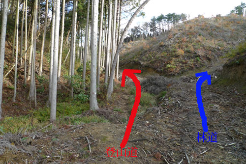 いくら進んでも地形図の直進の登り口がありません。さすがにこれはまずいと思い引き返しました。