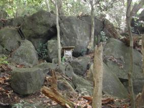7:08 標高260m 梅林登山口通過。 以前に来た時より登山口の藪はさらに覆い茂っている。