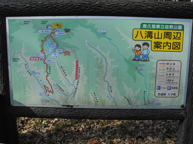 駐車スペースから30mほど先に大きな案内看板があります。このような案内看板が至る所に設置されています。