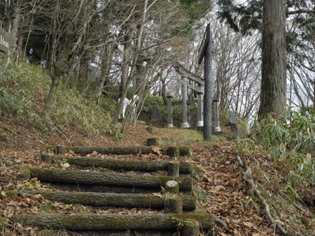 その階段を上ってやっと八溝神社の鳥居が見えてきました。やれやれでした。