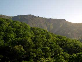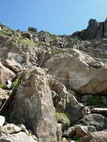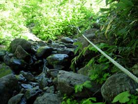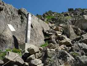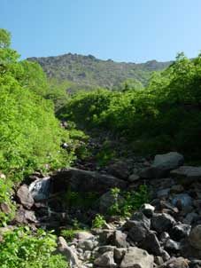 ![]() 河原坊登山口です。幅が6mくらいありますが,50mも進むと登山道になります。 ![]() 河原坊登山口から早池峰山の展望です。 ![]() ロープの張ってある沢渡渉です。手すり代わりにするのでしょう。 ![]() 天気が良ければゴロタ石登山道から早池峰山が見えます。 足元は十分注意が必要です。 |