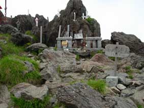![]() 御座走りの道標です。 ここからはコースを右寄りに撮ります。 この先の打ち石,千丈が岩にも道標があります。 ![]() ハヤチネウスユキソウです。 クリックすると大きくなります。 ![]() 御座走りからは山頂まで急登です。 千丈が岩からは超急登です。 ![]() 山頂に着くと広場になっていて,避難小屋間も見えます。 ![]() 奉剣されている大岩 ![]() 山頂の道標で撮影 |