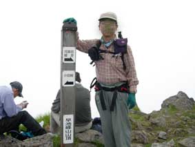 8:08 標高1,375m付近 沢途中で休憩。 向かいには薬師岳が見えます。快晴です。「ほうぁ。暑い!」 8:16 出発。 休憩時間8分。 ここで単独男性登山者二人に抜かれました。 「やっぱり遅いんだなぁ。膝を痛める前の,昨年なら抜かれることはなかったよなぁ」 ミヤマキンバイがありました。ジグザグ道を登り始めたところです。 ここから急登が始まりました。 チングルマがありましたが,もう終わりかけです。 ミヤマオダマキがありました。「おぉ,いっぱいあります」 8:38 標高1,500m付近 ここにもチングルマが咲いていました。ミヤマシオガマがありました。ヨツバシオガマかなと思ったけど,葉っぱの形が違うので,家に帰ってきて図鑑を見るまで,種名が分かりませんでした。 8:54 標高1,595m 御座走り通過。 早池峰山頂0.8km 河原坊1.8kmの道標有り。 御座走りの道標です。 急登を登っています。更に急登です。かなり急登です。 9:13 1,680m 打ち石通過。 早池峰山頂0.7km 河原坊1.9kmの道標有り。 相変わらず急登です。 この辺からナンブイヌナズナがありました。全山にありました。ここの固有種らしいです。監視人さんが言ってました。 ハヤチネウスユキソウがありました。残念ながらまだ蕾です。 9:25 標高1,755m 千丈が岩。 休憩。 早池峰山頂0.4km 河原坊2.2kmの道標有り。 休憩中に虫が寄ってくるので,パウダータイプの虫除けをかけました。 でも,まだ虫が寄ってくるので,更にかけたら寄ってこなくなりました。 ここからは河原坊と小田越の小屋が見えます。 9:35 出発。 休憩時間10分。 山頂間近の急登です。 9:55 標高1,890m付近 山頂直下 チングルマ満開。先ほどからガスが出てきて,ふと気が付くと周りがガスで見えない位かかっています。 ミヤマキンバイ,ミヤマオダマキ,ミヤマアヅマギクを一緒に撮りました。 10:00 標高1,910m 早池峰山頂到着。 先ほどのチングルマからすぐに山頂でした。 ザックを下ろす前にイワベンケイがあったので,写真に撮りました。 また,ヤマガラシもあったので写真撮影しました。 これは種名が分からなかったのですが,他の人がそう言ってました。家に帰ってから図鑑で調べたら間違いありませんでした。 山頂でザックを背負ったまま,他の登山者に撮影してもらいました。逆光で何度もシャッターを押してもらい,露出をオーバーにして写すとちょうど良かったです。 山頂の道標や奉剣されている広場の裏に,良い休憩場所がありました。ほとんど人が来ません。こちらも広場になっていて休憩にすごく良いところです。こちらで休憩しまた。 |