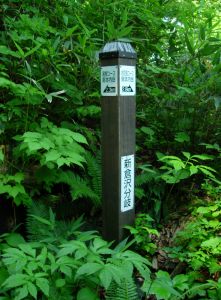 | 17:00頃 パークランドオアシス館に到着。 キャンプ場内を確認し,車を入れて場所を確保した。 18:00頃 パークランドオアシス館で夕食。 800円の生姜焼き定食を食べた。しょっぱかったが美味しかった。 その後入浴済ませた。 21:00 就寝。目覚ましを3時30分にセットした。 平成19年8月12日(日) 3:30 携帯目覚ましで起床。 すぐに車をパークランドオアシス館前に移動して駐車。 α米の「シソワカメご飯」にお湯を入れてセット。その後お湯を沸かした。 お湯がやや少な目だったためか,シソワカメご飯は硬めだったがそこそこ美味しく食べられた。パートナーはシソわかめご飯のみで,私は他に手巻き納豆巻きを食べた。食欲があったのか両方食べられた。他にきゅうりの漬け物を二人で食べた。 5:30 パークランドオアシス館出発。 6:20 登山口到着。 延々10kmの砂利道を50分掛かって登山口に着きました。 運転中に眠くて大変でした。でも,途中で寝るわけにいかないので,がんばって登山口まで運転しました。 6:45 標高620m 登山口出発。 7:00 標高660m 一番目の沢通過。 渡渉のためのロープが張ってありますが,無くても十分渡れます。 ![]() この後,幾つかの沢を渡渉して新倉沢に着きますが,いずれも問題なく渡れます。 7:58 標高955m付近 休憩。 新倉沢まで行くつもりでしたが,まだ50m程の標高差があるので,ここで休憩を取りました。 ここまで花撮影で5分程度ロス。不明花を幾つか撮影しました。未だに不明です。 ヨツバヒヨドリ,ツルリンドウがありました。ナルコユリ(タケシマラン?)・ツバメオモト・ユキザサの果実もありました。 8:09 標高955m。 出発。 休憩時間11分。 8:15 標高965m 新倉沢渡渉通過。 ここは数名の休憩が出来る程度の広さがあります。休憩場所からあと6分がんばれば新居倉沢まで来られました。がんばれば良かったかなと思いました。 新居倉沢は二つの流れになっていて,写っているのは手前の小さめの沢です。奥に少し大きめの沢があります。よほどの大雨でない限り渡渉には問題ないと思われます。 ![]() 8:18 標高975m お花畑分岐通過。 お花畑2.8km,尾根コース2.5kmの道標あり。 沢渡渉をしてすぐに道標がありました。新倉沢渡渉からこの分岐までの登山道は,ヒンヤリと冷たい空気が心地よかったです。きっと沢の伏流水脈があるのでしょう。このような感じは北泉ヶ岳の氾濫原の付近でも感じました。 道中で心地よく感じたのは,この一瞬と帰りの南本内岳尾根歩きの時だけでした。 この辺にタマガワホトトギス,トリカブト,ミヤマアキノキリンソウがありました。 花撮影で5分ロス。 8:37 標高1045m。 南門内清水到着。 休憩。 ここの清水は美味しいです。すごく冷たくていやな味がほとんどありません。でも僅かに渋みがある感じです。 前の休憩から30分弱しか歩いていませんが,休憩し南本内清水を飲みました。このことがこの先の登山中に,ず〜っと頭の中で頼みの綱の水場として,力強い存在でした。ここで休憩し清水を飲んで,印象を残しておいて良かったと思いました。 ![]() ここにズダヤクシュがありました。 8:46 出発。 休憩時間9分。 少し進むとイワオトギリ,ミヤマダイモンジソウがありました。 ミヤマダイモンジソウはしばらくぶりに見られたので,すごく嬉しいです。パートナーと喜びました。ツルアリドオシもありました。 9:14 標高1165m お花畑と尾根コース分岐通過。 お花畑1.8km,尾根1.4km,登山口3.4kmの道標あり。 お花畑分岐からお花畑方向を見ています。木道になっています。ここからとぎれとぎれにお花畑が続きます。 ![]() お花畑を通過中です。木道になっています。この辺ではオニシオガマ,ミズギク,ミヤマリンドウ,シロバナトウウチソウ,コバギボウシ,イワイチョウ,キンコウカがありました。 写真撮影で10分ほどロスしています。 オニシオガマは写真に撮ろうとしましたが,なかなか上手く撮れませんでした。オニシオガマは苗場山で見て以来久しぶりのご対面です。この花も嬉しかったです。パートナーは忘れていたようです。 お花畑の木道から南本内岳の展望です。9:42 標高1240m付近。 休憩。 お花畑を過ぎ,急坂にかかるところの木道で休憩しました。暑いです。 「なんか? クラッとするなぁ」 9:56 出発。 休憩時間14分。 この間ではシナノキンバイ,モミジカラマツ,ネバリノギラン,ガクウラジロヨウラク,タカネニガナ,ソバナ,トモエシオガマ,エゾシオガマなどが見られました。 シナノキンバイは山で見た時,ミヤマキンポウゲだと思い撮影しました。でも,シナノキンバイの可能性もあるよなぁ。と思い,帰宅してから図鑑などでいろいろ調べてみたら,下記のことからシナノキンバイとの結論を出しました。 @雄しべの回りに小さな花弁のように見えるものがある。 A茎に稜角がある。 花撮影で10分ロス。 10:25 標高1345m 急登通過中。 「暑?い」この急登で後ろを振り返ったら,三界山が素晴らしい威容を見せています。やっと樹林を抜けた感じです。あまりの暑さで目眩(めまい)がしそうです。少し熱中症気味か