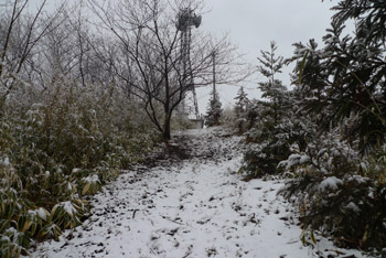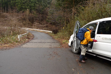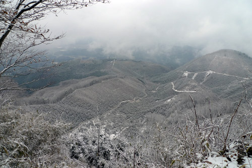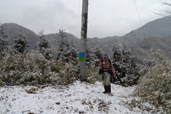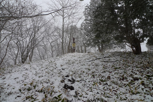 | 10:35 出発。 休憩時間10分。 高度計を見たらまた異常に下がっています。100mも下がって700mを示しています。どうなっているのでしょう。再度810mに調整して出発です。 11:00 標高800m 青麻山山頂到着。 「途中滑った。滑った。 笹を掴みながら下りた。」 休憩を取らずすぐに出発です。 ![]() あけら山に向かって鞍部に下った登山道が,既に白くなっています。雪は降っていない様に感じていましたが,知らず知らずのうちに積もっているようです。 周辺は相変わらずガスっています。でも,風が無いから寒くないです。 下山中に大きく方向を転換する場所の展望が開けていました。 作業道などが見えます。 ![]() 11:42 標高460m 電波塔登山口到着。 ![]() 下の写真は電波塔からの登山口です。「山頂1.7km,電波塔0.0km」の標識がコンクリート柱に張ってあります。登山口の道標がありません。 「電波塔0.0km」など不用なので,「青麻山登山口」と表示してくれた方が親切かも。 ![]() ここから舗装道路です。高度計が大きく外れた数値を示しています。ここでまた調整しました。 東屋に向かいます。 ![]() 11:50 標高395m 東屋で食事 休憩。 ![]() 12:28 出発。 休憩時間38分。 「あ〜,食った。寒い」 12:55 標高310m 登山口到着。 ![]() 僅か30分程の歩行で,高度計が225mを示しています。今日の高度計は標高から大きく外れて表示します。会長の高度計も狂っているようです。不思議です。 送電線沿いに下りてきて,登山口のすぐ側にでました。 |
