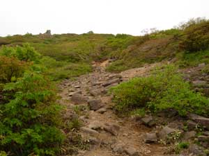 | 8:33 弘法清水出発。 休憩時間13分。 少し歩いたらツマトリソウ,シラネアオイ,ミツバオウレン,ハクサンチドリがありました。少しずついろいろな花が咲いています。 8:55 標高1,495m付近。 歩行中。 ハクサンイチゲがありました。小さいけど写真に撮りました。今日初めてです。 9:02 標高1,515m付近。 歩行中。 ミヤマキンバイありました。 9:10 標高1,565m。 1番目のガレ場通過。 ![]() 振り返ると宮城の平野が見えます。雲がかかってきています。 9:14 標高1,600m 2番目のガレ場通過。 ![]() 山頂の分岐までもう間もなくです。このガレ場に大きなハクサンイチゲがありました。写真を撮ることにしました。 9:18 花撮影後出発。 休憩時間4分。 9:20 標高1,610m。 歩行中 ユキワリコザクラがありました。小さくて目立ちませんでした。初めて見ました。 何という花か分かりませんでした。コザクラの仲間であることはすぐに分かりましたが,ハクサンコザクラだろうかと思っていました。下山途中にすれ違った人がユキワリコザクラでどこにでもある花と違う」と言っていました。 この辺はハクサンイチゲとミヤマキンバイの群生地です。しかも大きいです。 9:26 標高1,635m 不忘の碑通過。 山頂はガスっています。不忘山0.3km,白石スキー場3.9kmの道標有り。 ![]() 不忘の碑から不忘山山頂展望です。山頂は少しガスがかかっています。 9:42 標高1,705m 不忘山到着。 休憩。 山頂道標です。トマト,ブドウ,めかぶ海苔巻き食べました。美味しかったです。 9:55 不忘山出発。 休憩時間13分。 不忘山には4組が来ていました。皆さん南屏風岳の方に歩いていきます。 ガスが若干かかっているのが残念です。 ![]() 不忘山から南屏風岳方向の展望です。 ![]() 急下降の手前ピークから南屏風岳を展望しています。 ホソバイワベンケイ,フデリンドウがありました。フデリンドウは後ろに登山者がいたので,じっくり観察できませんでした。ひょっとしたらミヤマリンドウだったかも知れません。 急下降のところにミヤマオダマキ蕾ありました。 |